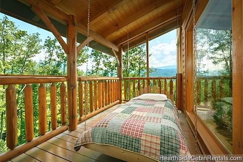 Swing beds, rocking chairs, and outdoor dining on covered porches