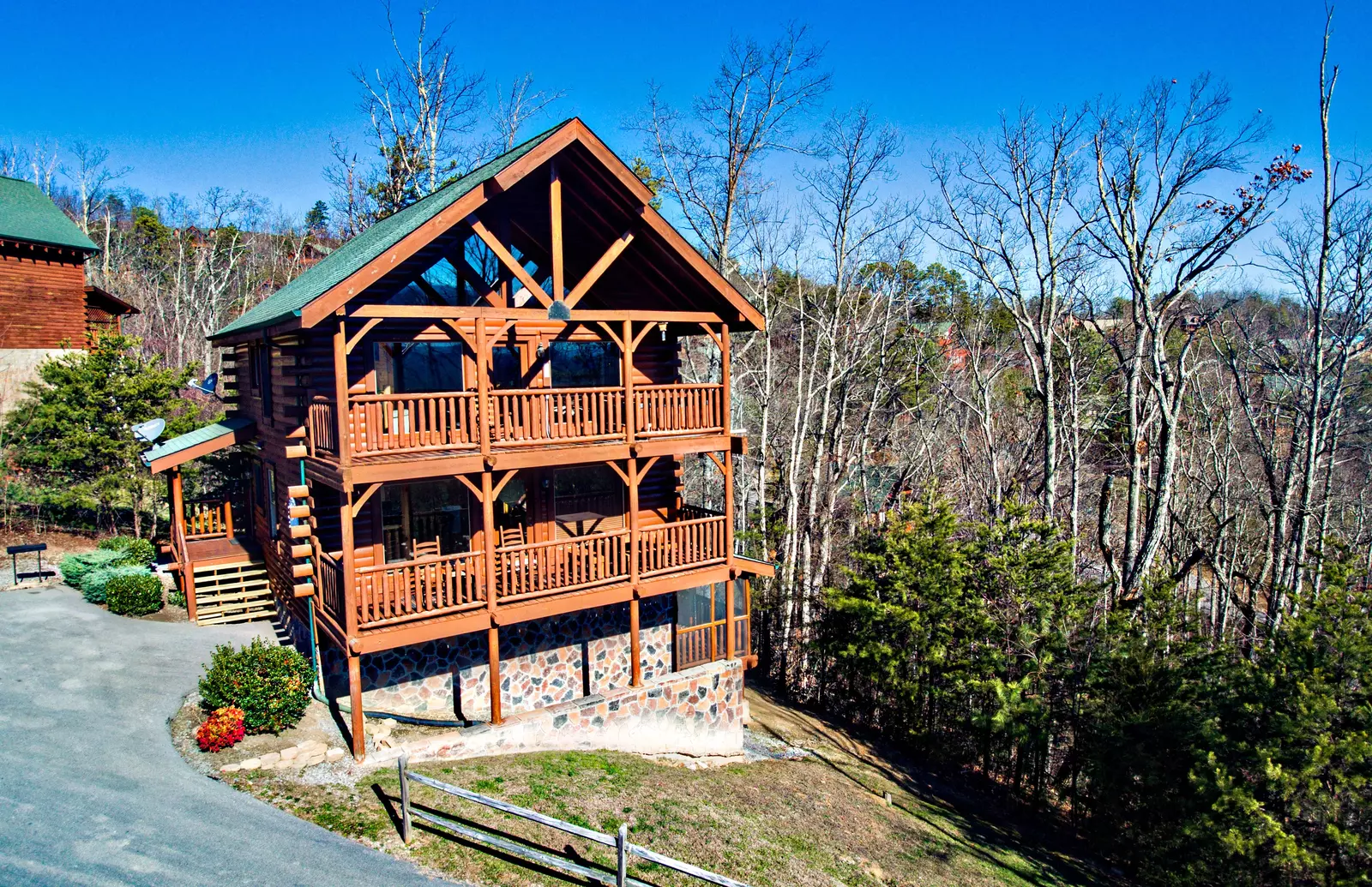 Flyin’ High is a beautifully furnished 3-bedroom, 3-bathroom log cabin rental near Pigeon Forge, offering panoramic views of Mount LeConte and the Great Smoky Mountains. Located just 10 minutes from the Parkway, this three-level cabin features over 2,500 square feet of premier living space, including three spacious decks, a full game room, a hot tub, and unique swing beds for relaxing in the mountain breeze.