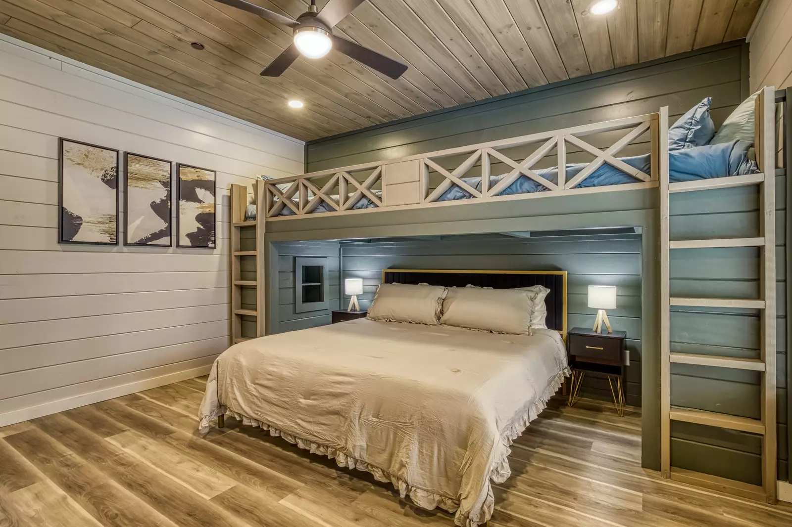Bedroom 2: King Bed with custom Twin Bunks and full bath